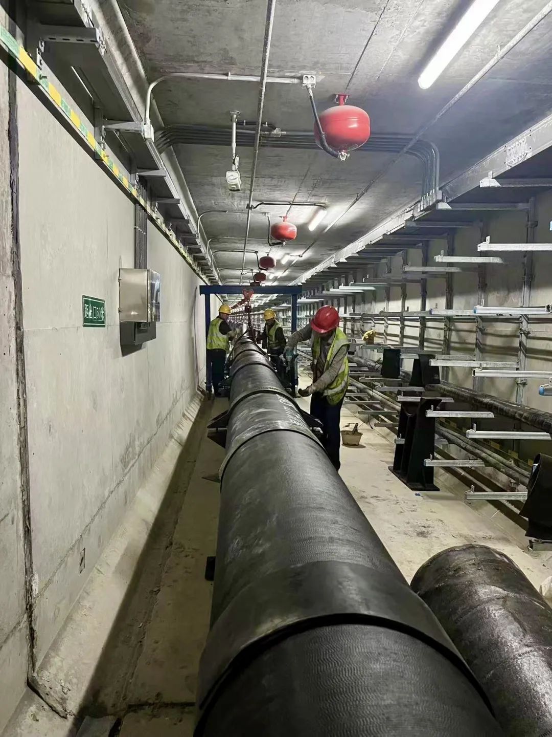 綜合管廊供水管網工程于今年3月份啟動,總投資700多萬元,在管廊運營管理單位和相關部門的指導下,施工單位結合實際制定施工方案、創(chuàng)新施工方法,專門定做適合地下管廊作業(yè)使用的小型龍門吊和水平運輸工具,同時上足人力,確保材料轉運入廊不受影響,從而克服了作業(yè)空間狹窄、材料轉運吊裝等困難,確保了項目安全、有序完成。進入管廊可以看到,一條直徑DN400的球墨鑄鐵管道被穩(wěn)穩(wěn)安裝固定在管廊底部基座上,管道兩端將分別與迎賓大道、編鐘大道供水主管網連通,管道通水后城南片區(qū)供水將形成環(huán)狀管網,可有效緩解片區(qū)供水壓力不均衡的現狀,將為城南片區(qū)供水服務及后期開發(fā)建設提供堅實保障。