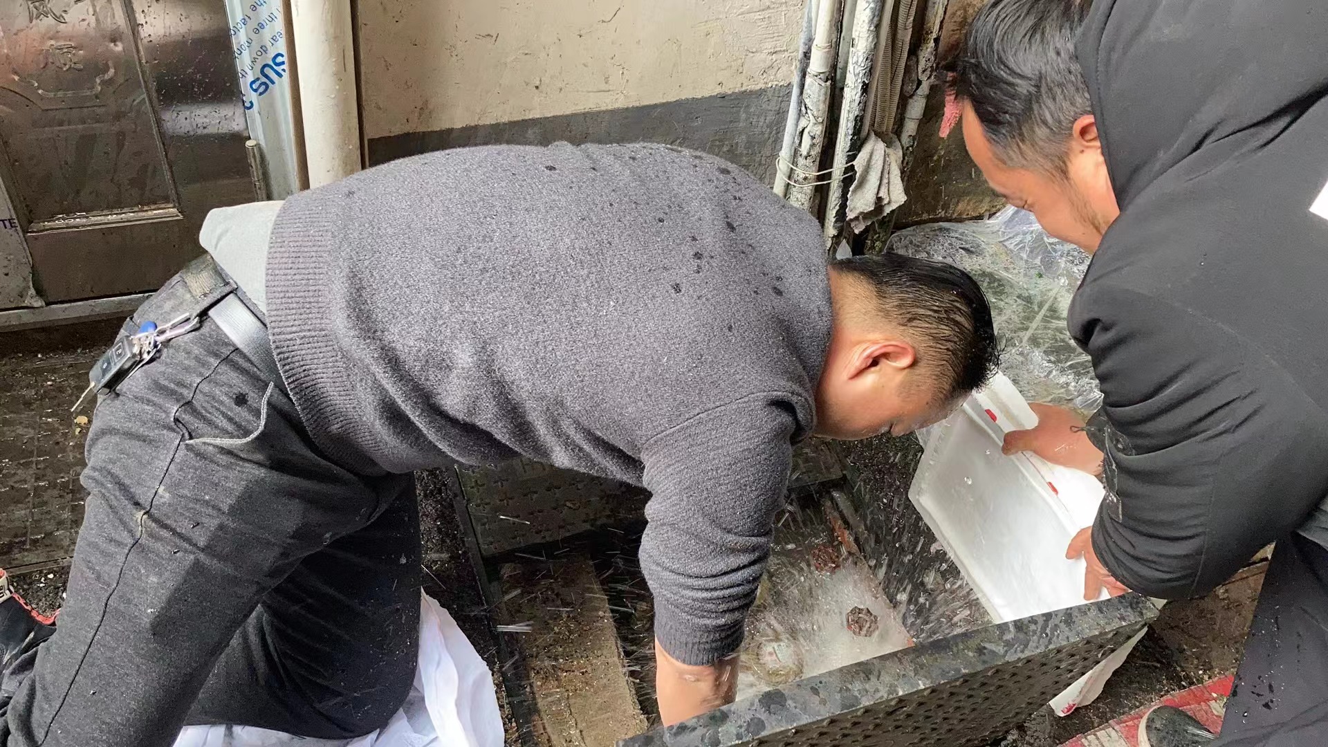 與此同時,客戶服務中心的搶修人員在小區(qū)幫助用戶解凍通水,為了便于操作,搶修人員不戴手套跪在已經上凍的表井池旁伸進冰冷水中進行維修,雙手凍得通紅,渾身直打顫,絕大多數(shù)人搶修人員的手、腳都凍傷了,但為了用戶們能夠盡快用上水,可他們卻義無反顧,“我們也知道冷,但是沒辦法,戴上手套不好操作,為讓用戶早些有水可用,我們一直都是這么做的”。為了用戶們能夠盡快用上水,他們的工作沒有停息過。