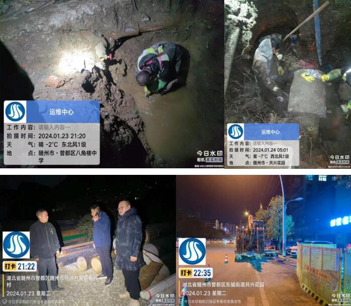 1月23日,有市民反映鐵路片區(qū)下坡處地面有積水,附近有學(xué)校,周邊住戶也較多,對市民出行造成極大安全隱患。測漏人員第一時間到場勘查,排查后發(fā)現(xiàn)漏點(diǎn)在下坡處拆遷區(qū)內(nèi),工作人員及時與當(dāng)?shù)厣鐓^(qū)居委會和相關(guān)部門取得聯(lián)系,經(jīng)過多方協(xié)調(diào),滿足施工條件后,立即組織搶修隊(duì)伍進(jìn)行開挖,在寒風(fēng)凜冽的深夜,搶修人員爭分奪秒,全然顧不上他們已凍得通紅的雙手,只希望以最快速度完成改造作業(yè),最大程度減小停水作業(yè)對居民的影響。當(dāng)晚21點(diǎn)25分歷時3小時將DN100管道漏水點(diǎn)搶修完畢,保障了極寒天氣下周邊居民、學(xué)生出行的安全。