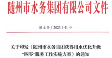 2.關(guān)于印發(fā)《隨州市水務(wù)集團獲得用水優(yōu)化升級“四零”服務(wù)工作實施方案》的通知