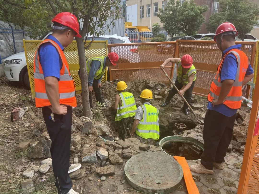 7月6日上午,客服人員接到群眾的熱線電話,清河路清河庭院附近路面大量跑水,運維中心搶修人員十五分鐘到達(dá)現(xiàn)場,通過路面積水判斷為DN400主管道爆破,測漏人員立即精準(zhǔn)定位漏點,關(guān)閉次處的管道會直接影響周邊黃龍五隊、清河庭院、東方小區(qū)、楚苑小區(qū)、雙橋家具大市場等,導(dǎo)致小區(qū)和企業(yè)大面積的水壓不足甚至停水??崾铍y耐,為減少管網(wǎng)爆裂等突發(fā)事件給居民帶來的用水影響,維修人員在35°的高溫下連續(xù)奮戰(zhàn)8小時,當(dāng)晚7點半就完成維修恢復(fù)正常供水。